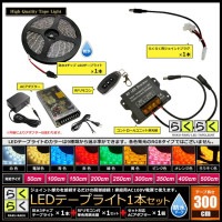 LEDテープライト 3m 1本 防水 3チップ 間接照明 取付簡単 リモコン 調光器 電源 らくらく点灯セット