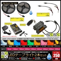 利用目的で選ぶ > お店・お家のLED照明 > 1色で発光・調光したい [らくらくテープ] > 防水タイプ > LEDテープライト 2.5m 2本 防水 3チップ 間接照明 取付簡単 リモコン 調光器 電源 らくらく点灯セット
