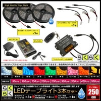 | らくらく防水LEDテープライト3チップ(3本)+調光器+対応アダプター [オールインワン・付属パーツ付き] ※選択された発光色 |