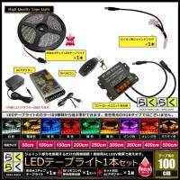 LEDテープライト 1m 1本 非防水 3チップ 間接照明 取付簡単 リモコン 調光器 電源 らくらく点灯セット